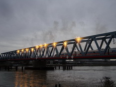 Après deux ans de travaux, le pont ferroviaire à deux voies sur le Rhin entre Kehl et Strasbourg a été inauguré. Long de 263 mètres, le pont est traversé à 160km/h par les TGV et les ICE.